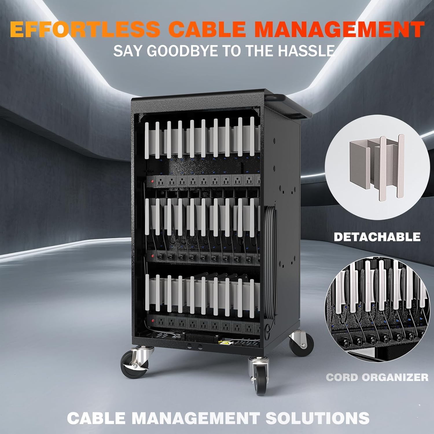 - 30 DEVICE CHARGING CAPACITY: The POCHAR C30A-H mobile charging cart can store, lock, and charge up to 30 devices, including Chromebooks, laptops, and tablets with screens up to 14 inches and thickness up to 1 inch.