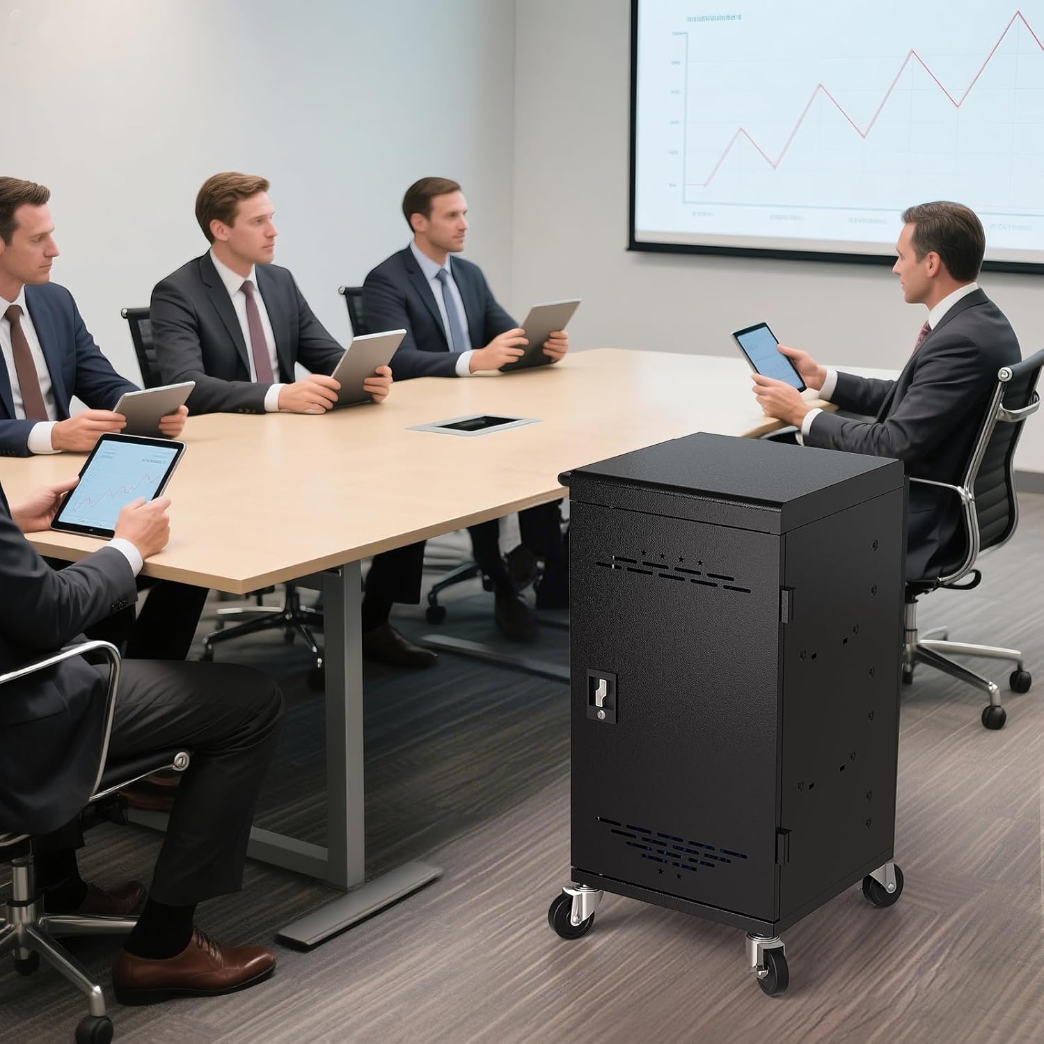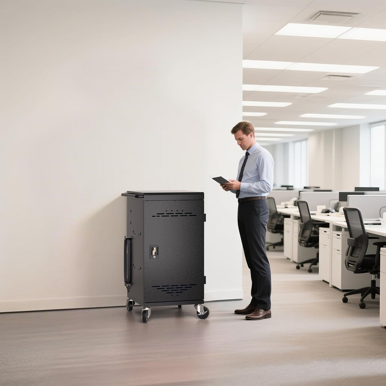 - SECURE KEY LOCKS: Both the front and back doors of this laptop charging cart feature built-in key locks, ensuring that all devices are securely stored and protected from unauthorized access.