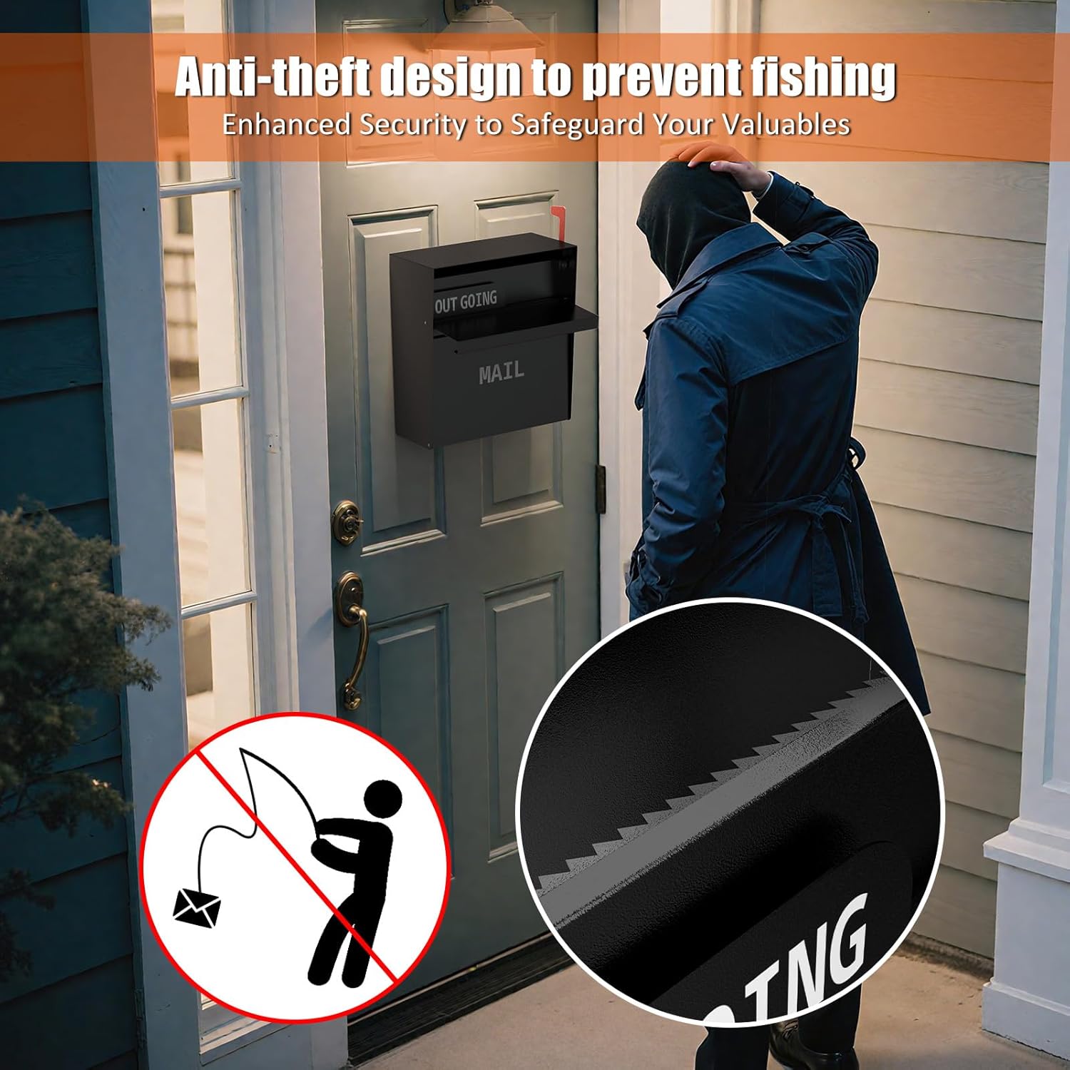 - Outgoing Mail Slot with Label:Top slot includes a clearly marked "OUT GOING" panel for easy letter drop-off and pickup.