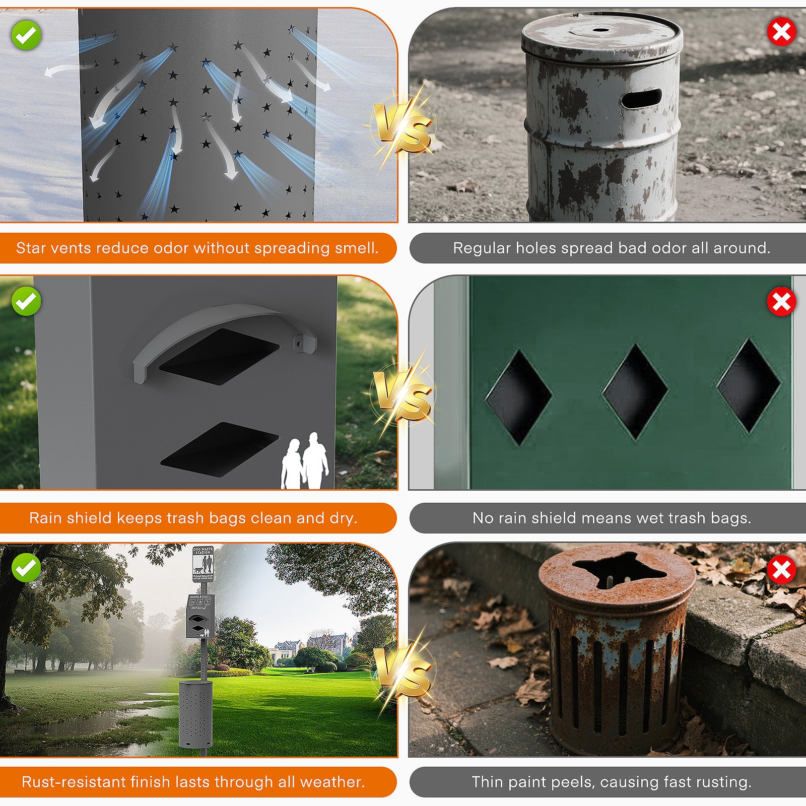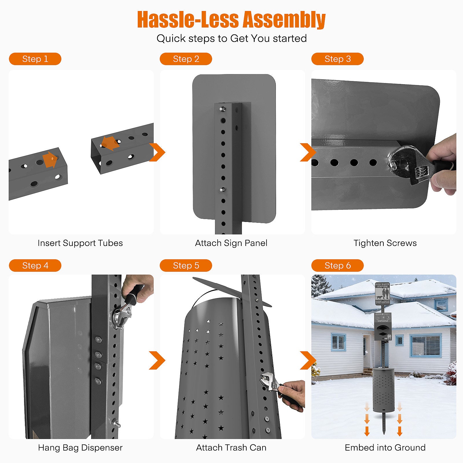 - Quick Installation Anywhere: Designed for easy in-ground setup, perfect for parks, HOA communities, trails, and backyards. Comes with all screws, tools, 600 bags, 50 liners, and a step-by-step manual for hassle-free assembly.