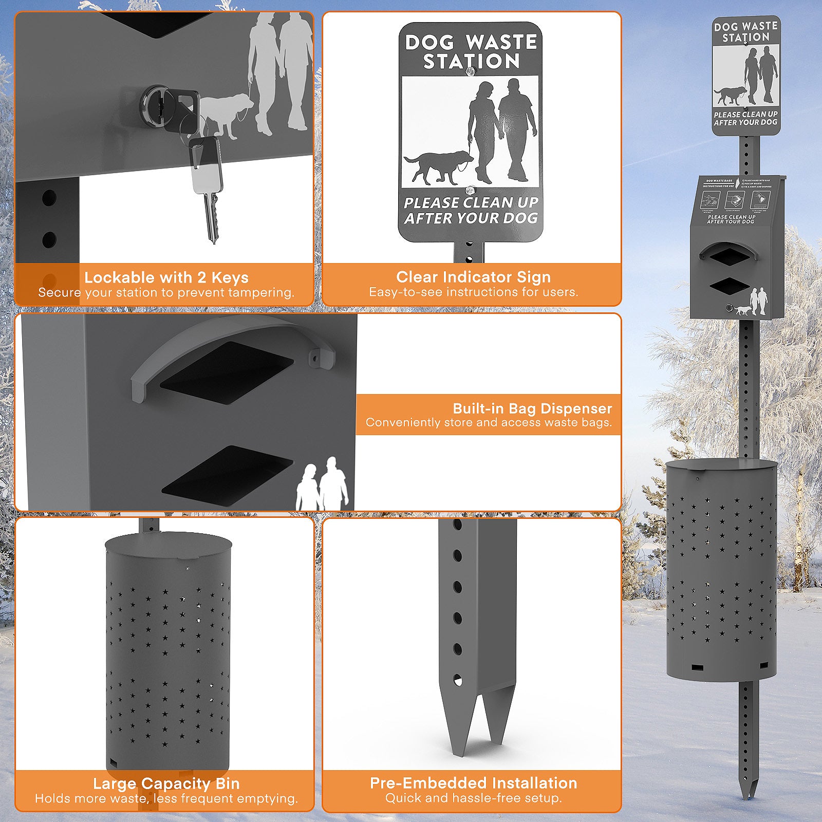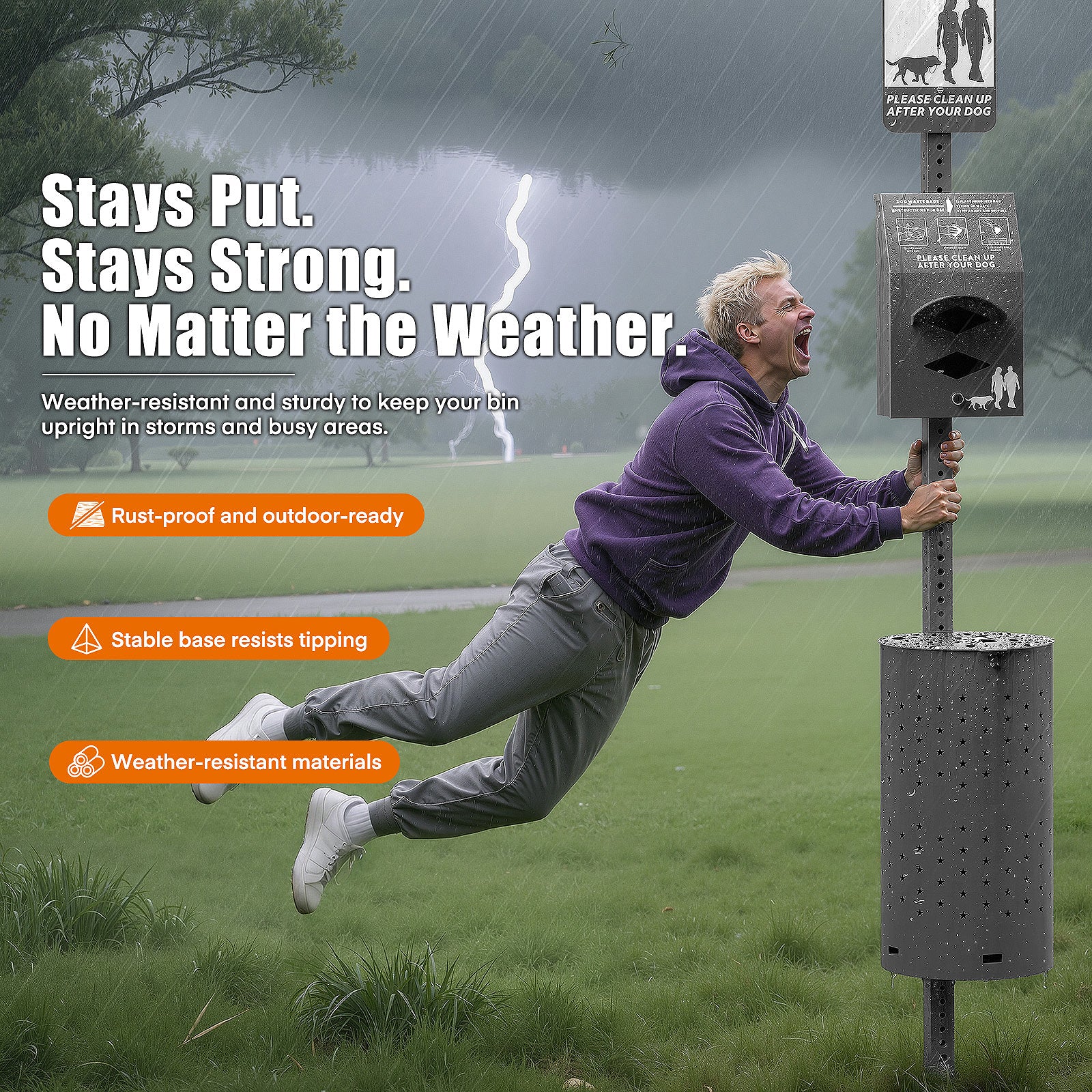 - Durable & Weather-Resistant: Made from rustproof aluminum, this dog waste disposal station withstands wind, rain, and long-term outdoor use. Its sturdy construction ensures reliable performance year-round.