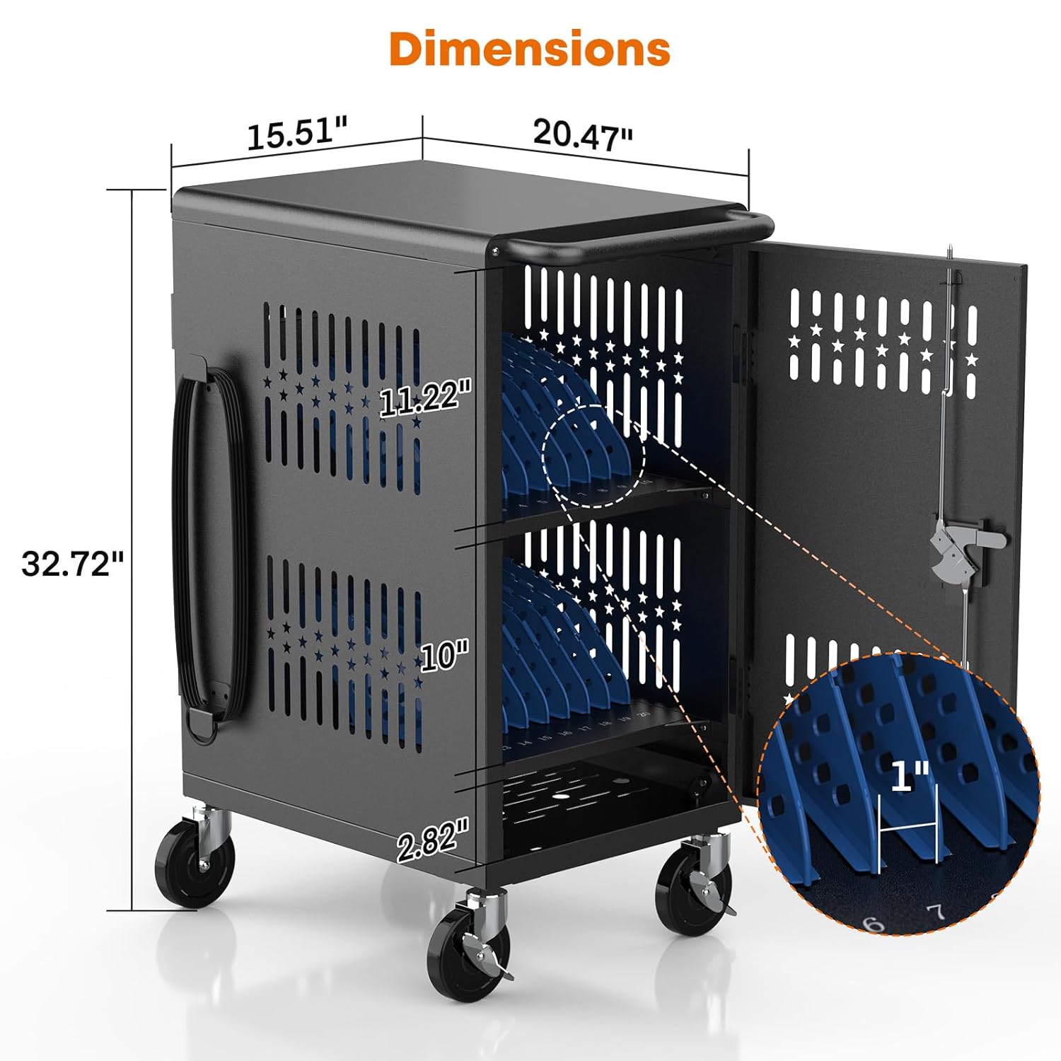 - STORE AND CHARGE 20 DEVICES: This charging cart can hold up to 20 Laptops and Chromebooks for a school classroom, office, library, warehouse, and more.