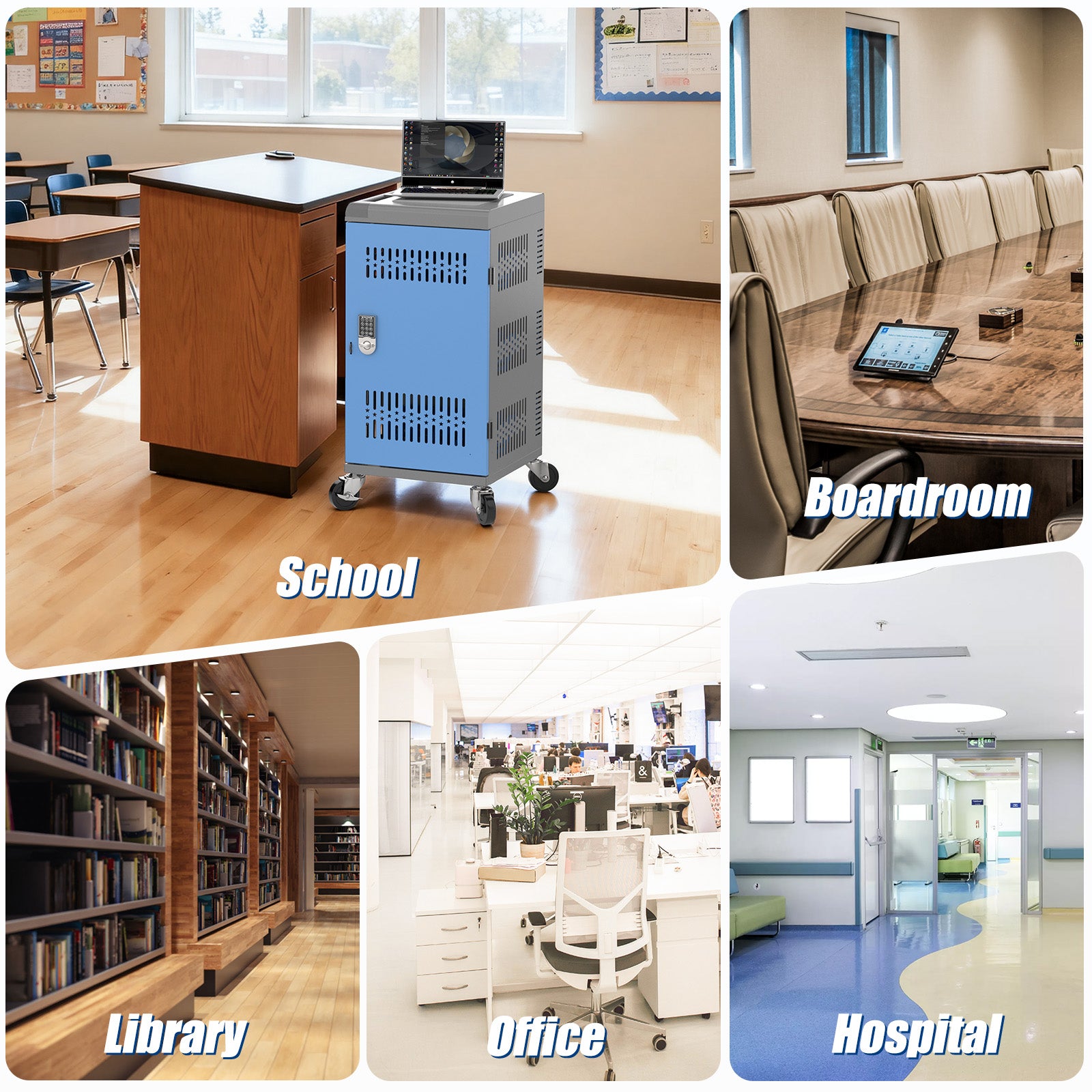 - STORE AND CHARGE 30 DEVICES: Our multiple device charger station can hold up to 30 laptops, making this the ideal lockable tablet charging station for your school classroom, office, library, warehouse, and more.