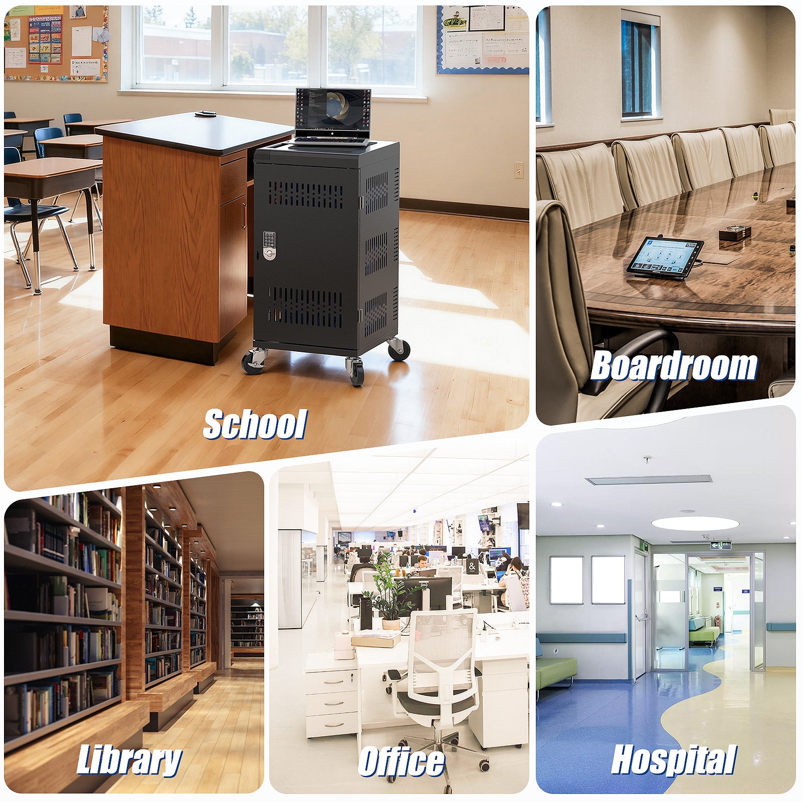 - STORE AND CHARGE 30 DEVICES: Our multiple device charger station can hold up to 30 laptops, making this the ideal lockable tablet charging station for your school classroom, office, library, warehouse, and more.